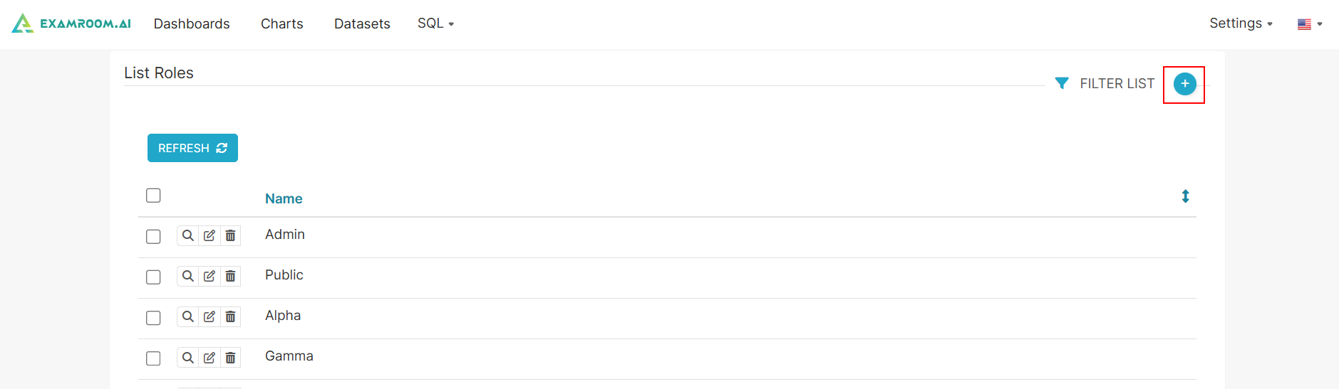 - On the ExamIQ, click Settings at top right corner of the screen and click List Roles to navigate to the List Roles section.