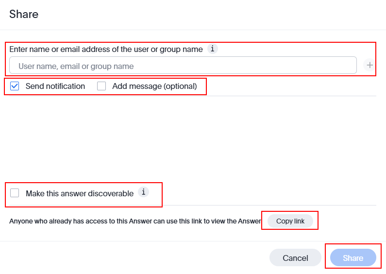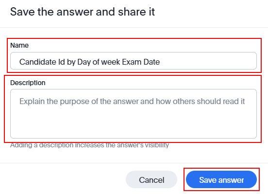 - Click Make this answer discoverable so users in the same group with access to the data source can access the answer.