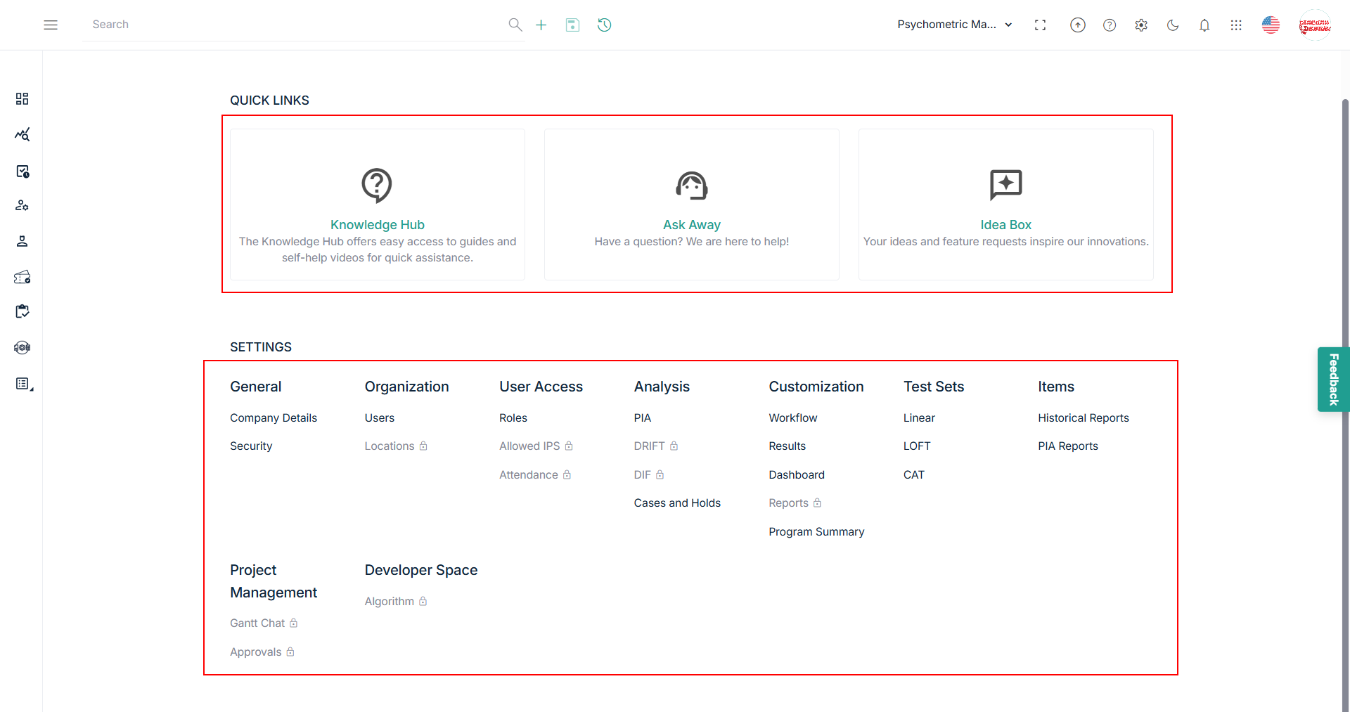 - Case and Holds: From the Cases and Holds option on the settings menu, you can manage cases and psychometric holds.