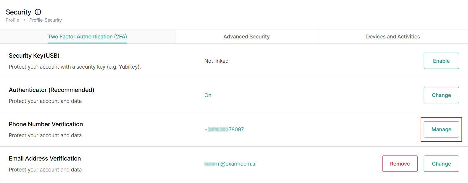 When using a phone number for verification, a code is sent via text to your mobile device. To enable or disable the phone number verification for your account, follow the steps below: