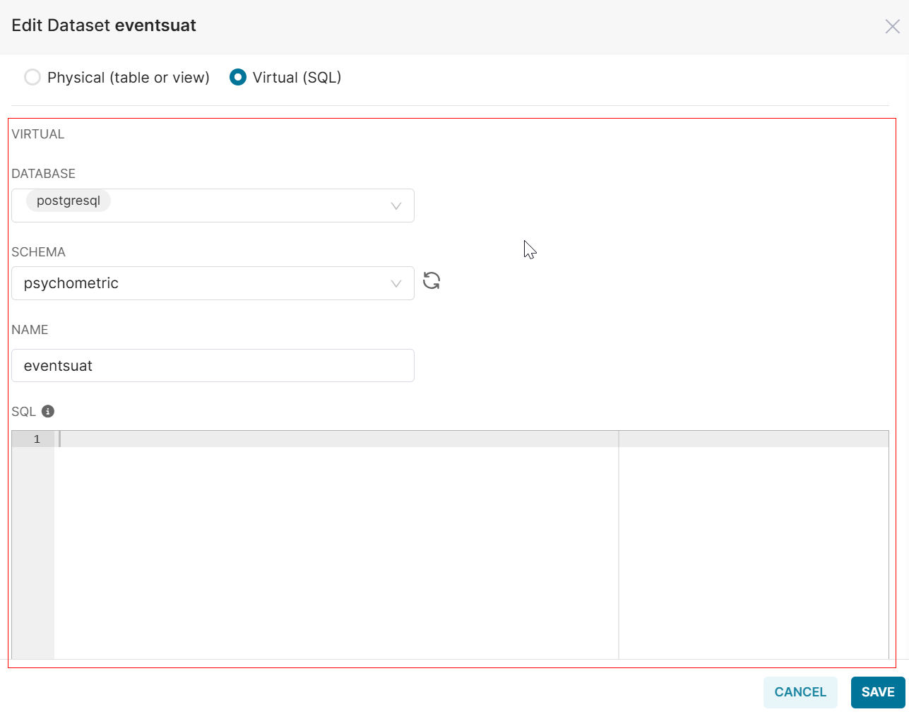 - Click Save to save the dataset settings. Otherwise, click Cancel to exit without saving.