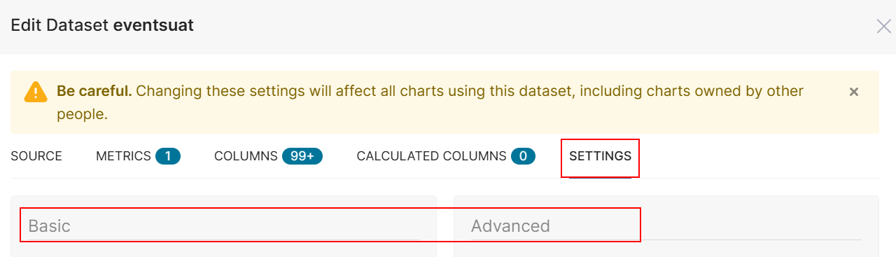 - Click the Setting tab on edit dataset and select Basic or Advanced.