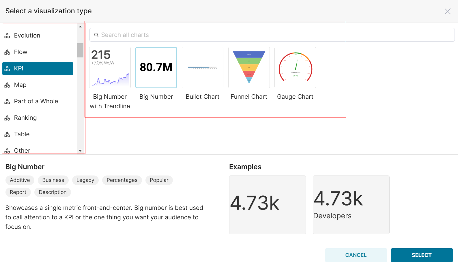 - Select the Chart from the list and click Select.