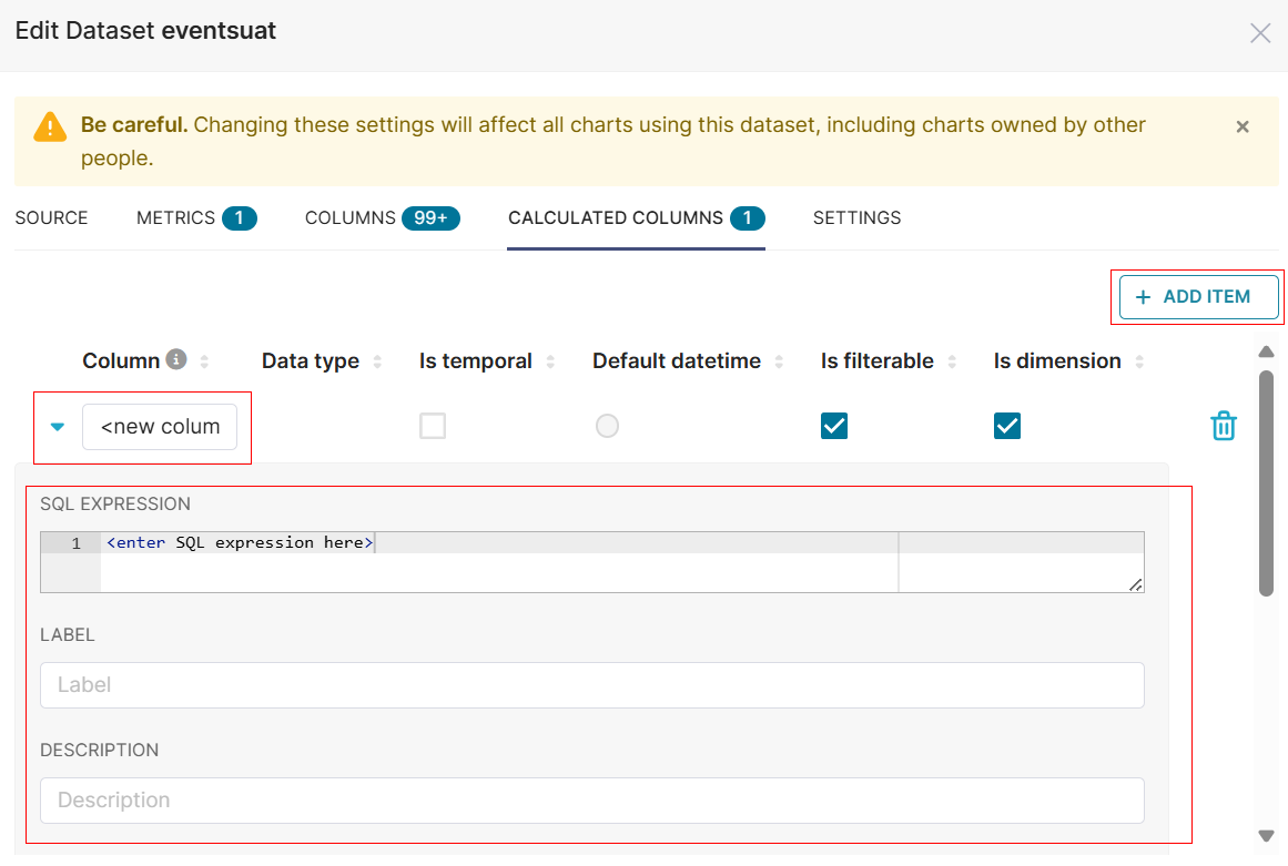 - Enter the Column Name, SQL Expression, Label, and Description.