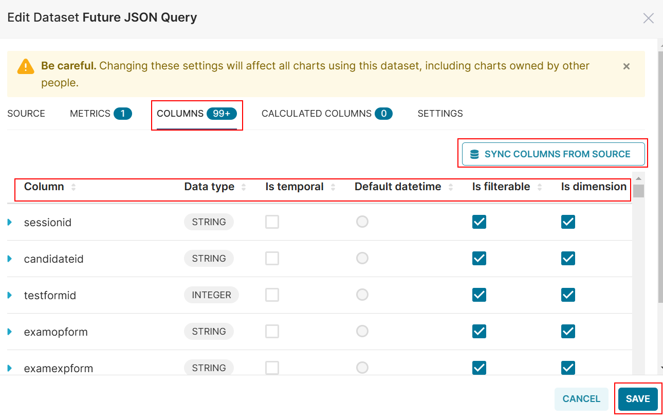 Note: Changing these settings will affect all charts using this dataset, including charts owned by other users.