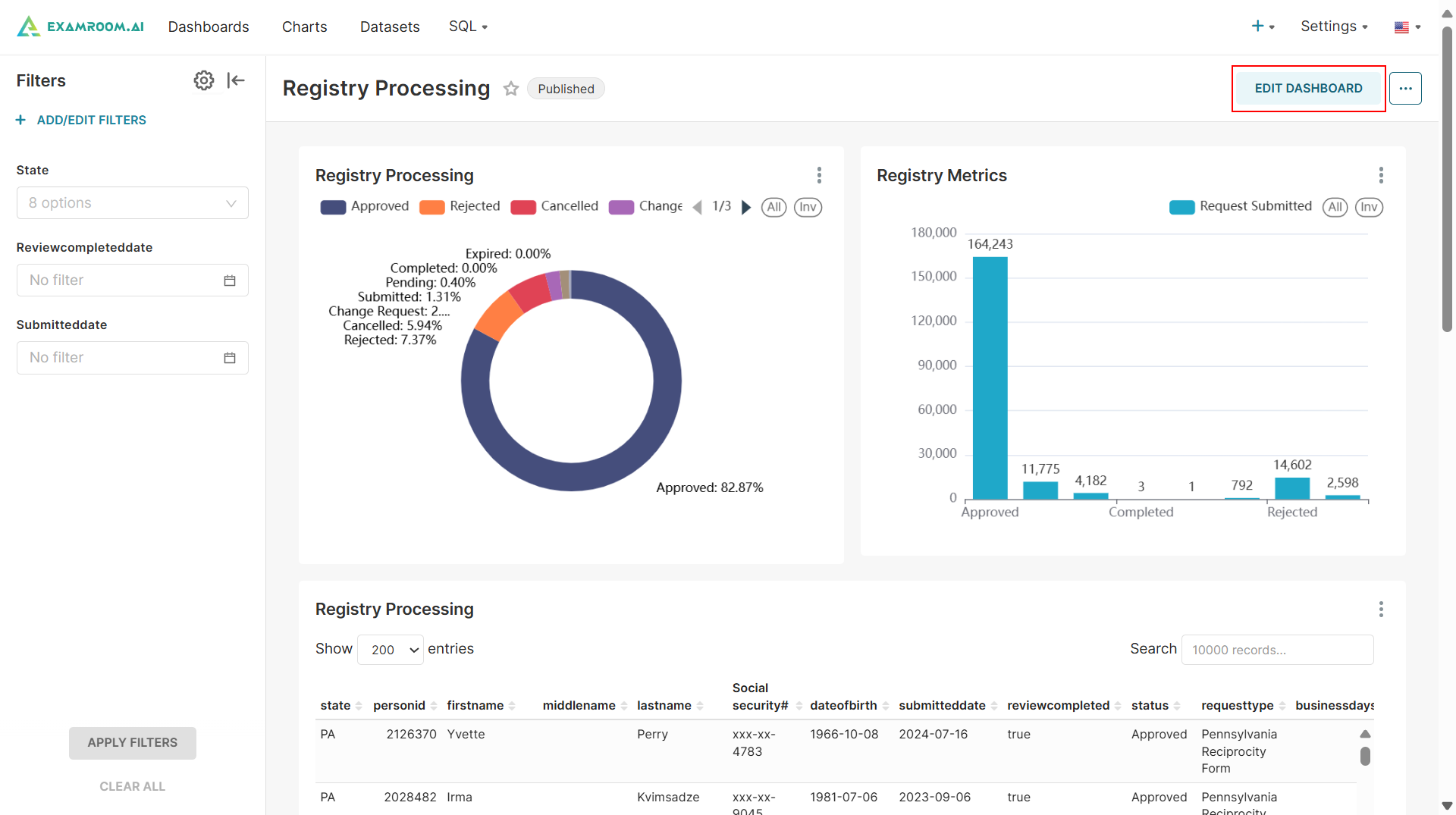 - Click the Edit Dashboard button to modify the dashboard chart details.