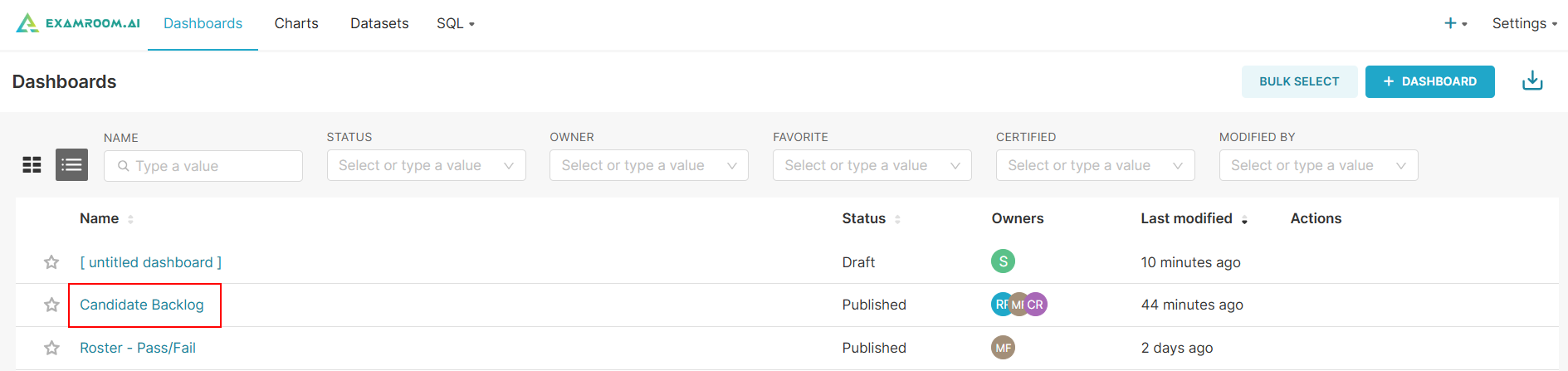 On the dashboards page, you can view all the charts created for respective dashboards.
